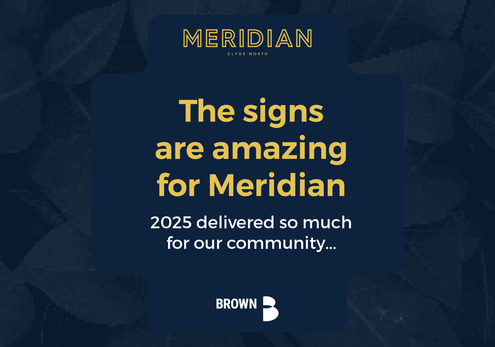 As we wrap up 2025, we want to extend a warm thank you to our Meridian community for your ongoing support and pride in our growing neighbourhood.